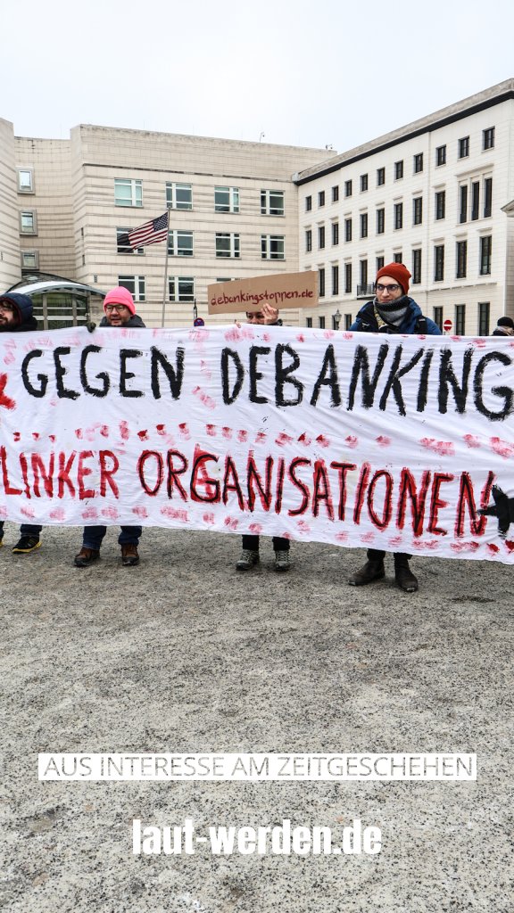 Das „Debanking” genannte Verhalten von Privatbanken, bei dem unter Anderem juristischen Körperschaften willkürlich und womöglich aus politischen Gründen die Geschäftsverträge entzogen wurden, motivierte Engagierte des sozialpolitischen Spektrums zur Mahnwache in der Hauptstadt.